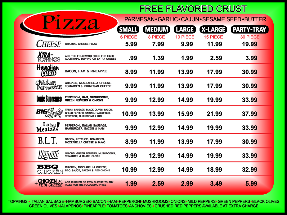 Pizza Menu